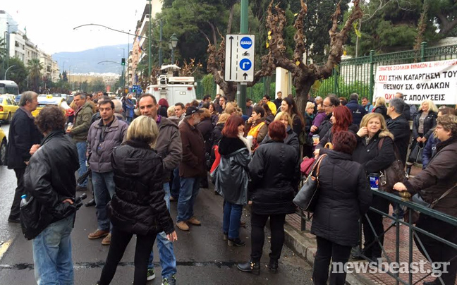 Έξω από το υπουργείο Διοικητικής Μεταρρύθμισης βρίσκονται συγκεντρωμένοι αυτή την ώρα περίπου 250 σχολικοί φύλακες, ζητώντας συνάντηση με τον Κυριάκο Μητσοτάκη.