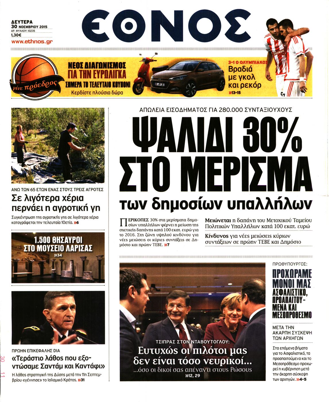 ΕΘΝΟΣ: Ψαλίδι 30% στο μέρισμα των δημοσίων υπαλλήλων