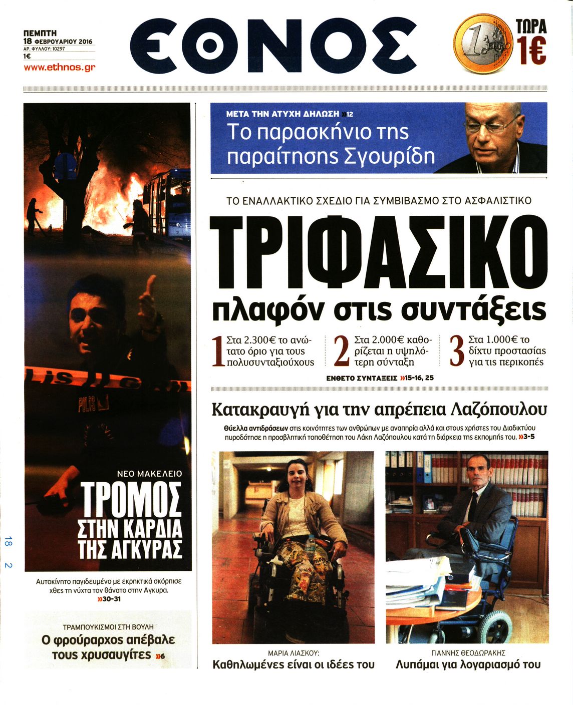 ΕΘΝΟΣ: Τριφασικό πλαφόν στις συντάξεις