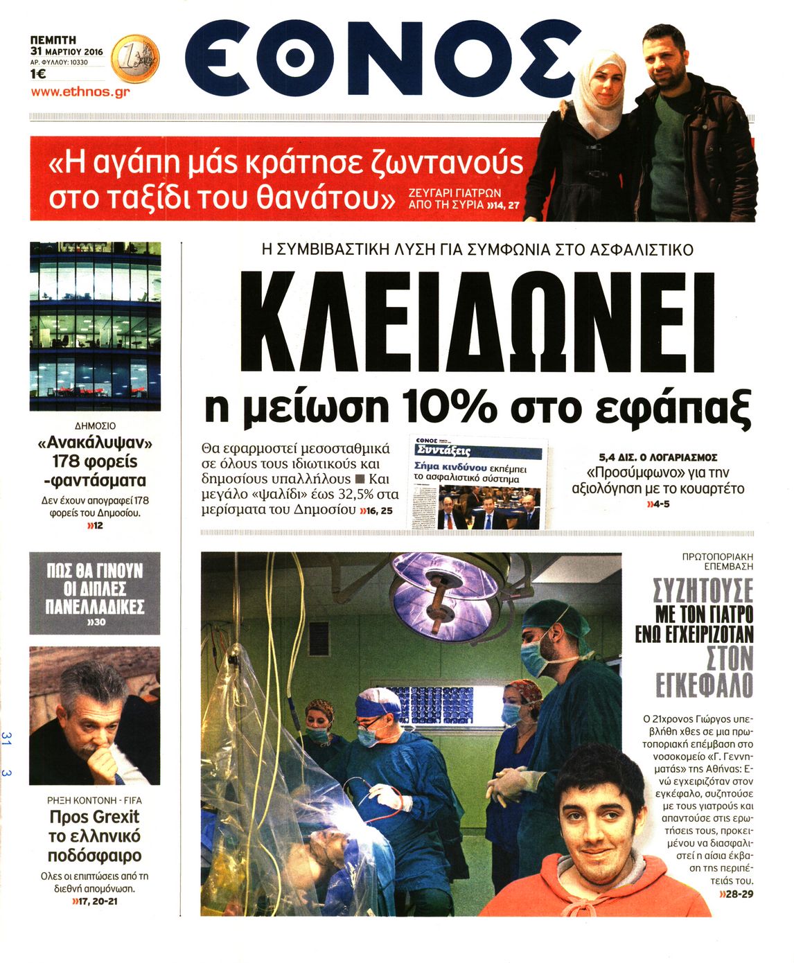 ΕΘΝΟΣ: Κλειδώνει η μείωση 10% στο εφάπαξ