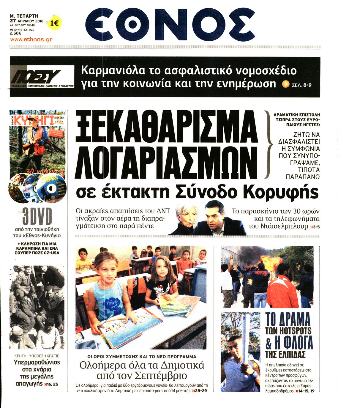 Η ΕΦΗΜΕΡΙΔΑ ΤΩΝ ΣΥΝΤΑΚΤΩΝ: Αδιέξοδο: έκτακτη σύνοδο κορυφής ζητάει ο Τσίπρας