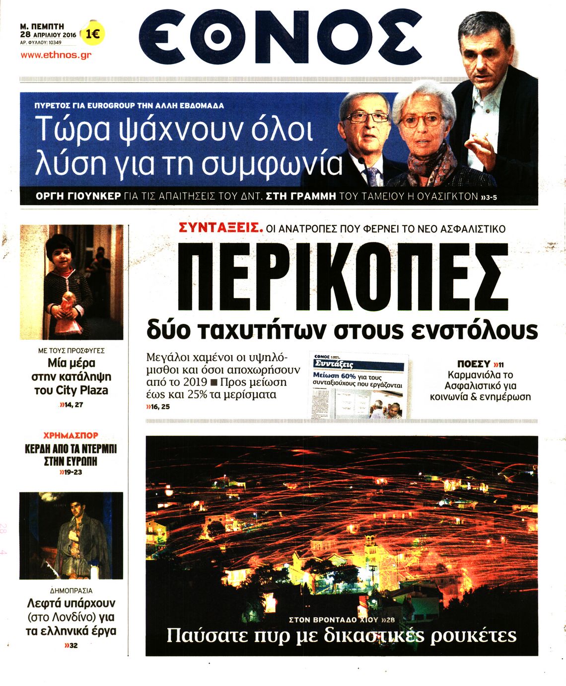 ΕΘΝΟΣ: Περικοπές δυο ταχυτήτων στους ένστολους