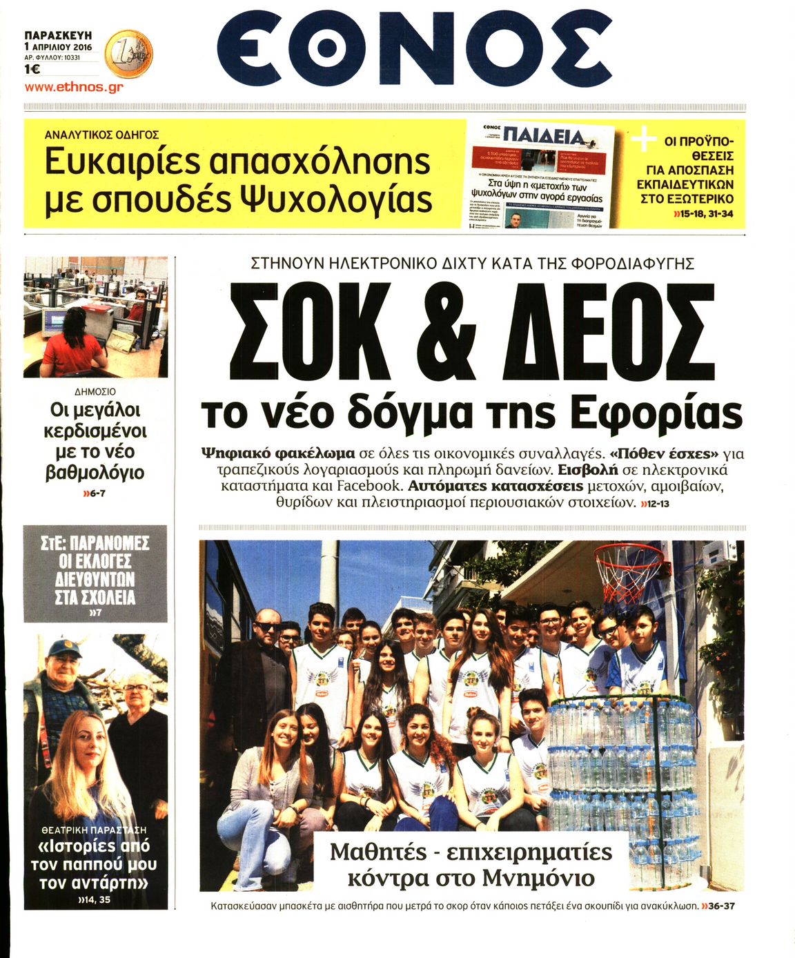 ΕΘΝΟΣ: Σοκ & δέος το νέο δόγμα της εφορίας