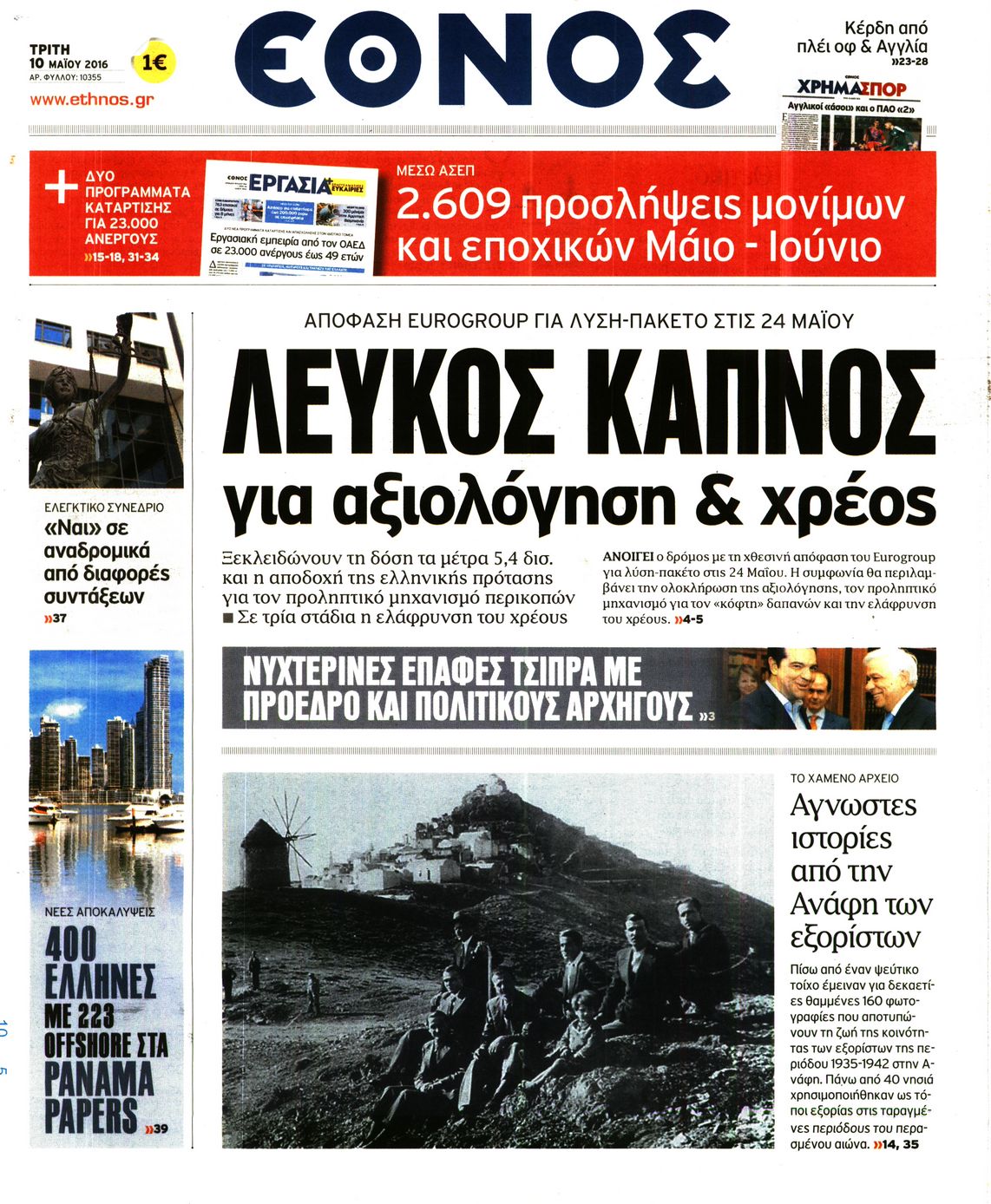 ΕΘΝΟΣ: Λευκός καπνός για αξιολόγηση & χρέος