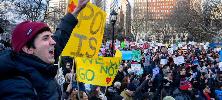 όσους έχουν χαρτιά, οι διαδηλώσεις από άκρη σε άκρη της Αμερικής κατά του διατάγματος Τραμπ συνεχίζονται αμείωτες.
