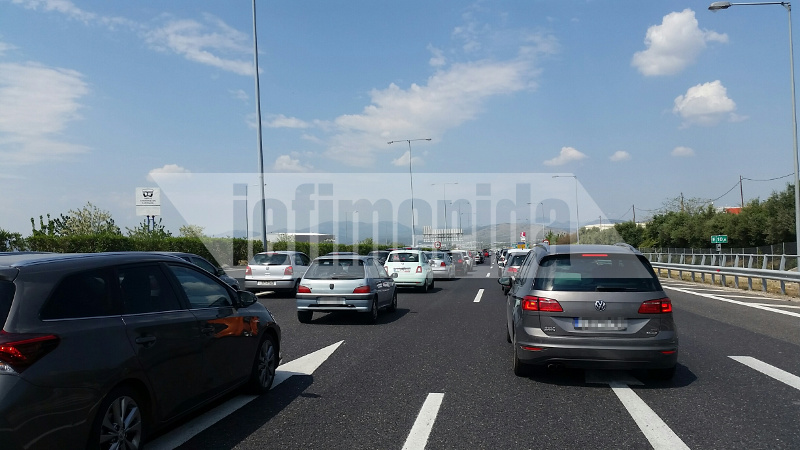τις ημέρες των εορτών, αφού έχει δημιουργηθεί μεγάλο μποτιλιάρισμα στην εθνική οδό.