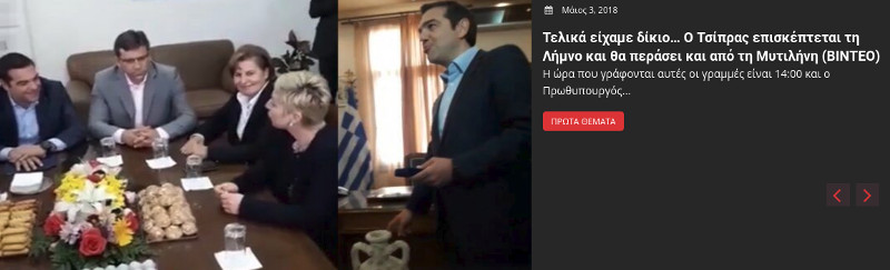 Είναι χαρακτηριστική η ανάρτηση του γνωστού δημοσιογράφου Γιάννη Σινάνη στο Lesvosnews.gr: Ο Τσίπρας επισκέπτεται την Λήμνο και θα περάσει και απο την Μυτιλήνη...